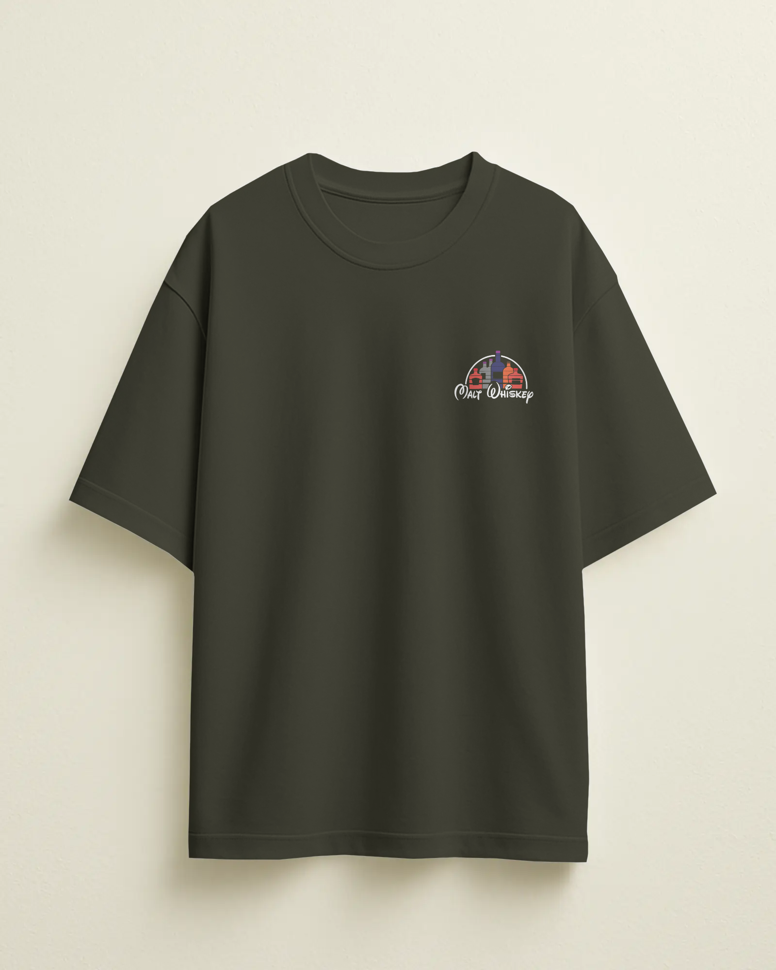 Bold screen-printed “Malt Whiskey” graphic