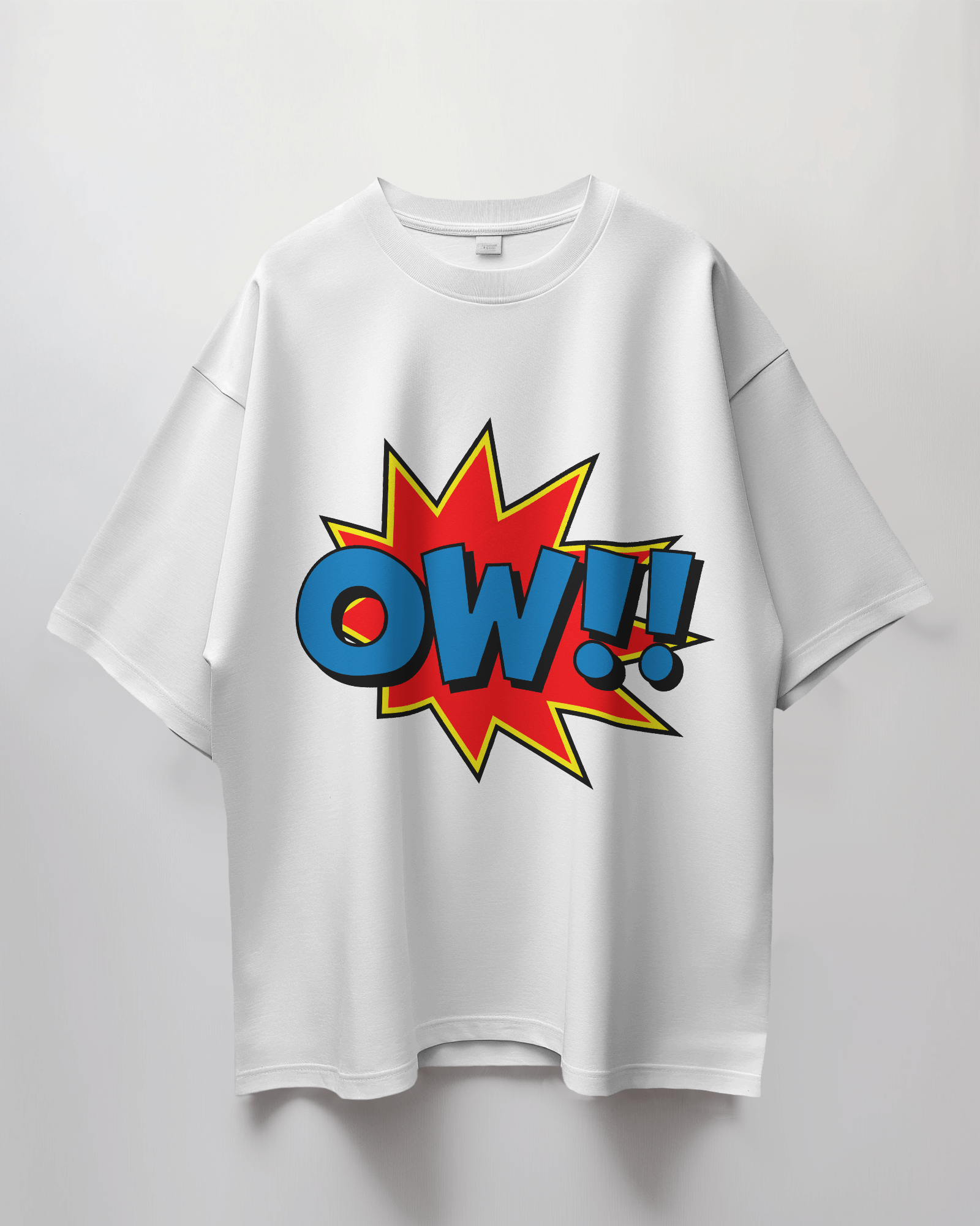 Add a pop of fun and quirk to your wardrobe with our Ow Comic Bubble Terry Oversized T-Shirt. This lightweight and oversized tee features a playful comic book bubble design, making it the perfect statement piece for any casual outfit. Show off your unique style with this must-have t-shirt!