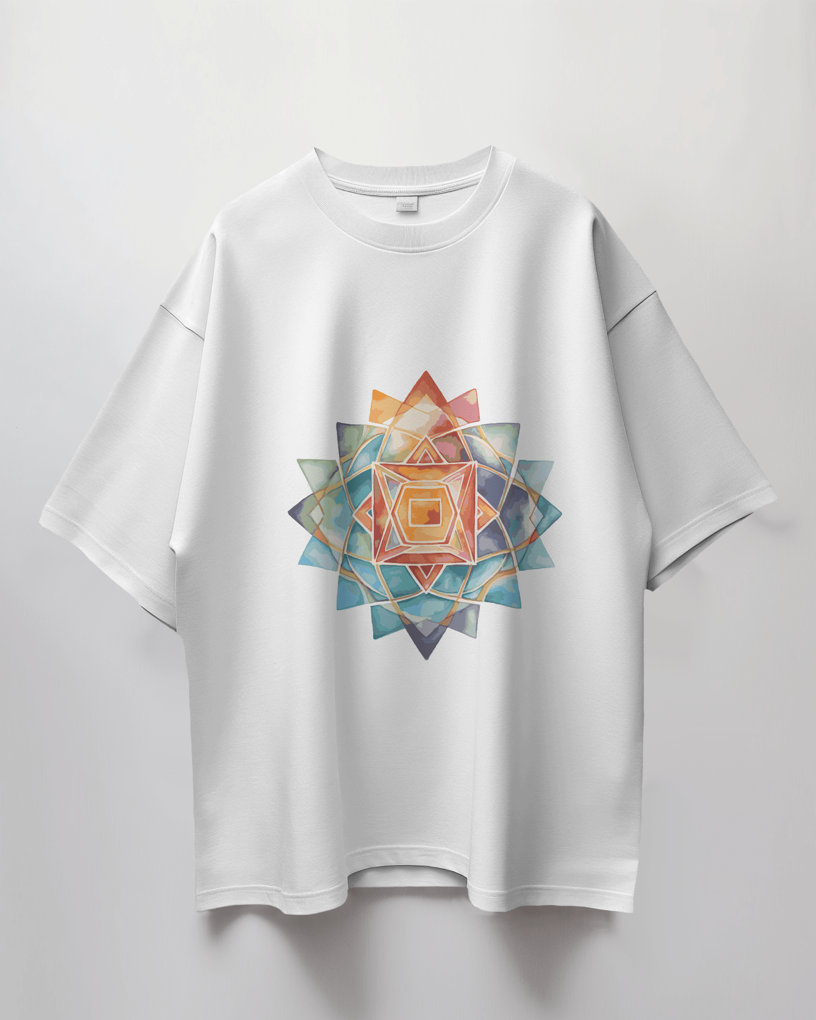 This Yantra Graphic Print Oversized T-Shirt features a unique watercolour print, adding an artistic touch to your wardrobe. The oversized fit provides a comfortable and relaxed style, while the high-quality fabric ensures durability. Add a pop of color to your outfit with this eye-catching statement piece.
